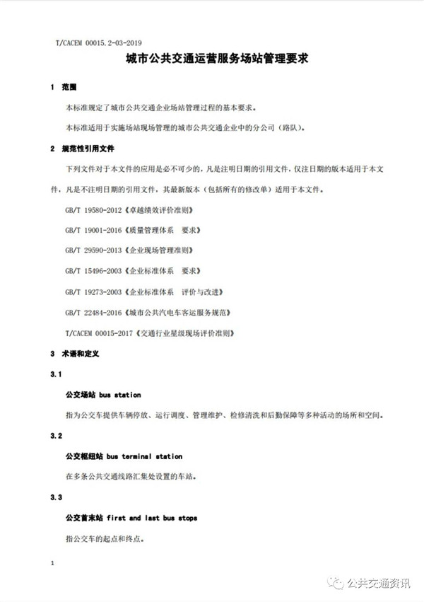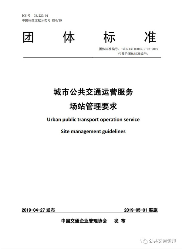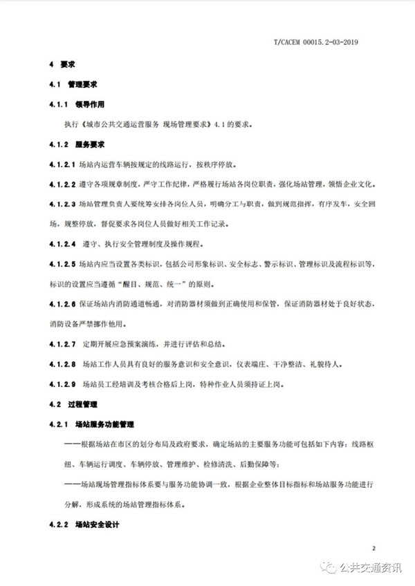 城市公共交通运营服务 场站管理要求T/CACEM 00015.2-03-2019