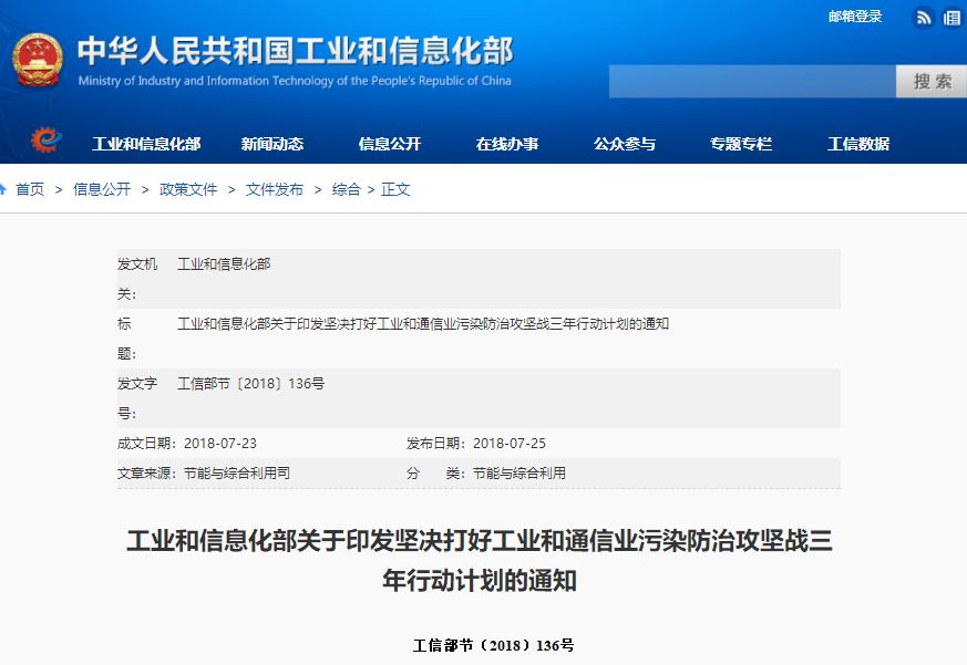 坚决打好工业和通信业污染防治攻坚战三年行动计划