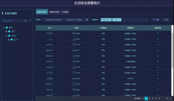 “主动安全防控系统”是基于人脸特征识别分析技术、车道偏离检测数据建立的运营安全监控管理平台,硬件部分包括云总线处理器车身后数据采集模块、驾驶状态监控模块和ADAS模块,主要功能如下: