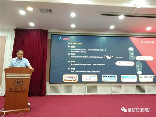 北京世纪联保消防新技术股份有限公司董事长梅盛先生带领公司销售部、商务部、市场部相关人员参加了此次会议。会上,市场部总监余长青先生做了《智领前沿,让客车消防更安全》的前沿技术分享。分享了世纪星自动灭火装置,客车喷淋系统、动力锂电池箱火灾防控系统、易燃挥发物防控装置等产品创新理念。世纪星领先的技术,过硬的产品质量,优质的售后服务,获得的与会代表热烈的掌声。