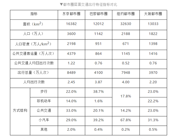 东京都市圈日出行总量为8489万人次,其中东京区部出行量为2604万人次,占总出行量的30.7%;每天进出东京区部的出行量达1090万人次,占总出行量的12.9%,进出东京区部的公共交通出行分担率达80%以上。