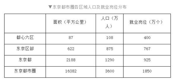 ▼东京都市圈各区域人口及就业岗位分布