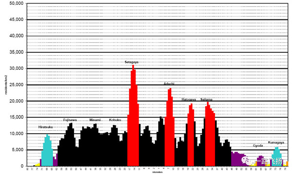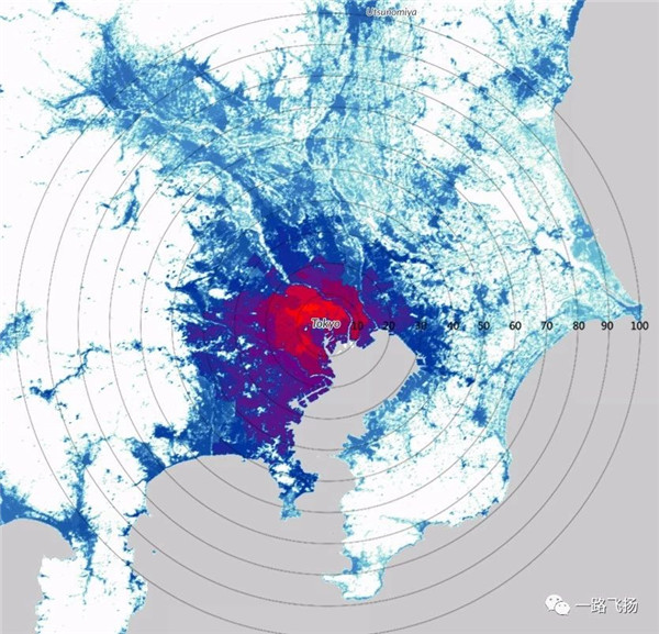 ▲东京都市圈人口密度分布
