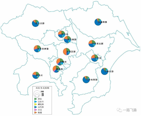 ▲东京都市圈分区域出行方式结构