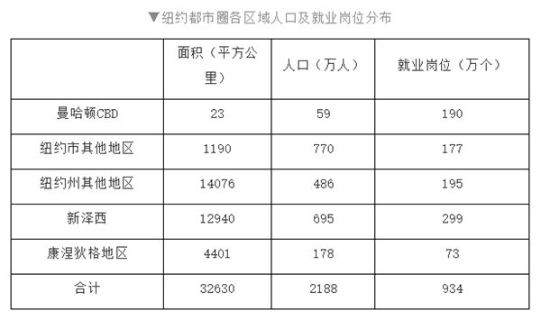 ▼纽约都市圈各区域人口及就业岗位分布