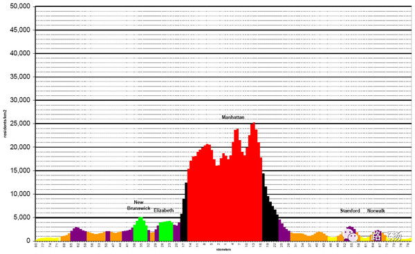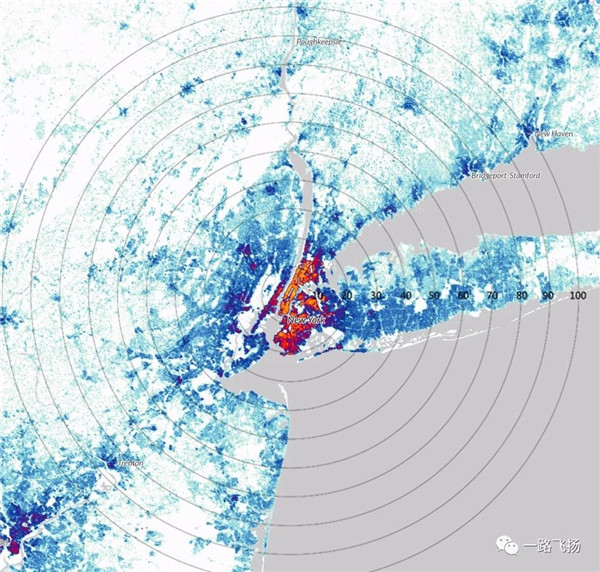 ▲纽约都市圈人口密度分布