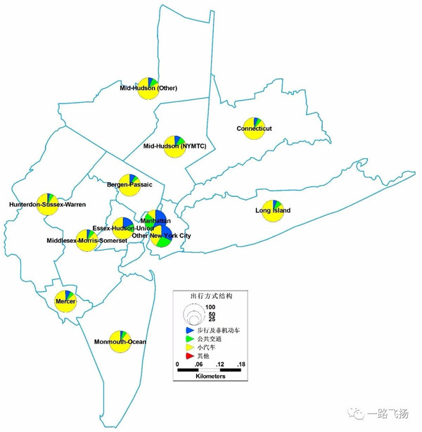 ▲纽约都市圈分区域出行方式结构