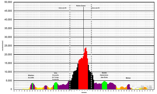 ▲巴黎都市圈人口密度分布