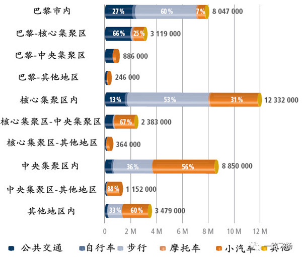 每天进出巴黎核心集聚区的388万人次出行中,113万人次进出巴黎市,275万人次进出除巴黎市以外的核心集聚区。