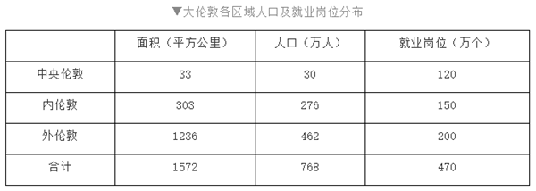 ▼大伦敦各区域人口及就业岗位分布