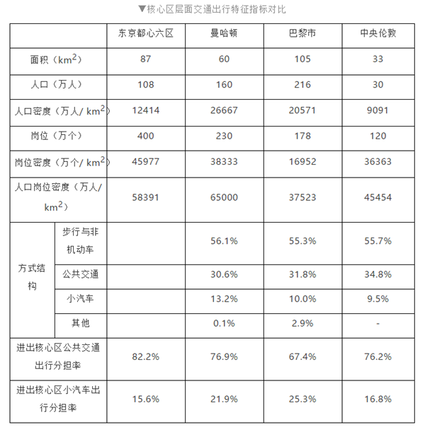 ▼核心区层面交通出行特征指标对比