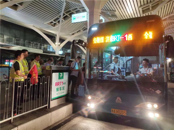 2019年以来,在充分论证的基础上,济南公交将15条普通线路调整至BRT专用道运行,既充分利用了道路资源,又提升线路运行速度,市民可在22个BRT站台实现普通公交与快速公交的免费换乘,进一步降低了乘客的出行成本,让更多的市民享受到快速、便捷、经济的BRT服务。截至目前,BRT网络日均运送乘客达33万人次,同比上升24.43%。